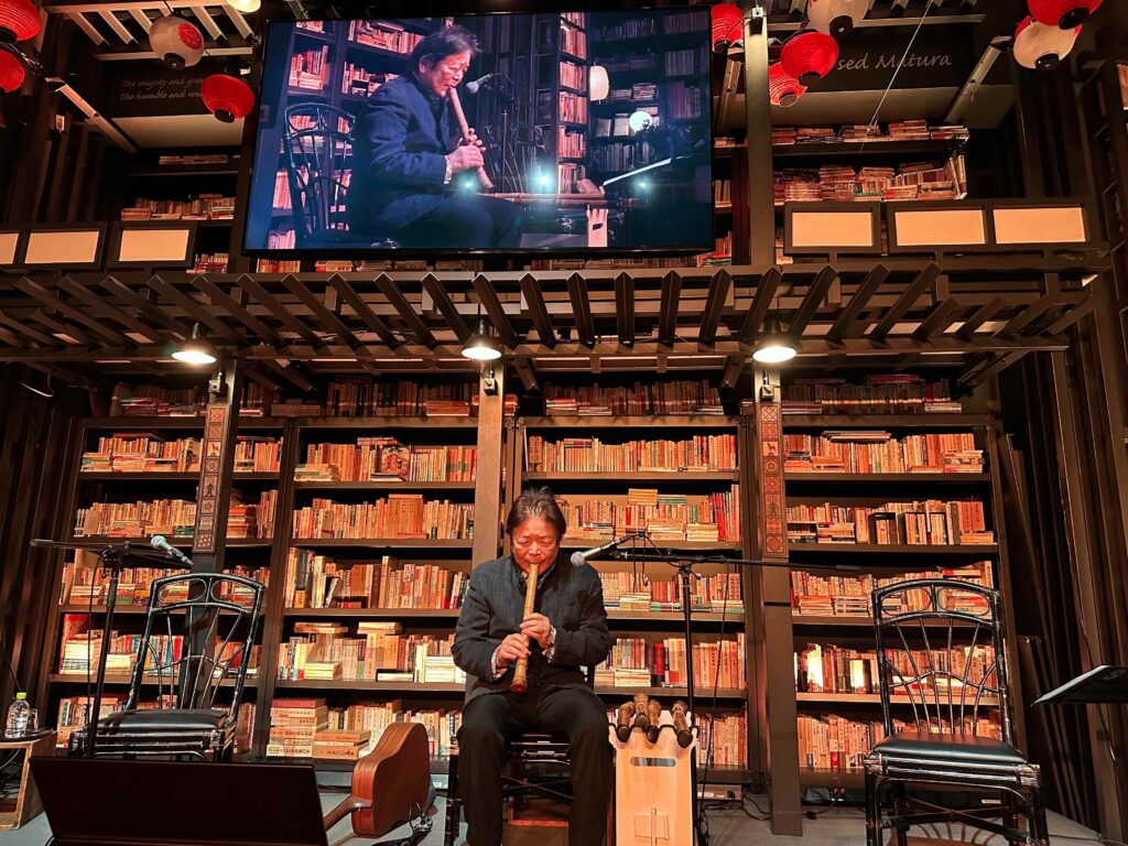 中村先生は虚無僧尺八演奏により、音と沈黙を対等な存在として表現し、聴衆に「間」の音響的解釈を提示した。